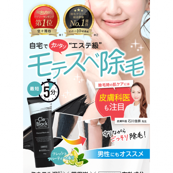 単に除毛するだけでなく保湿成分なども含まれており、男女問わず利用可能。特徴的な臭いはなく、最短5分で除毛が完了します。